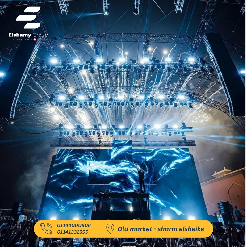 Transform your space with our cutting-edge lighting solutions! Whether it’s for a party, concert, or event, our wide selection of lighting products ensures you will shine bright. Our stage lighting options are perfect for professionals looking to elevate their production quality. Bring your vision to life with Elshamy Group’s lighting expertise! [Image]